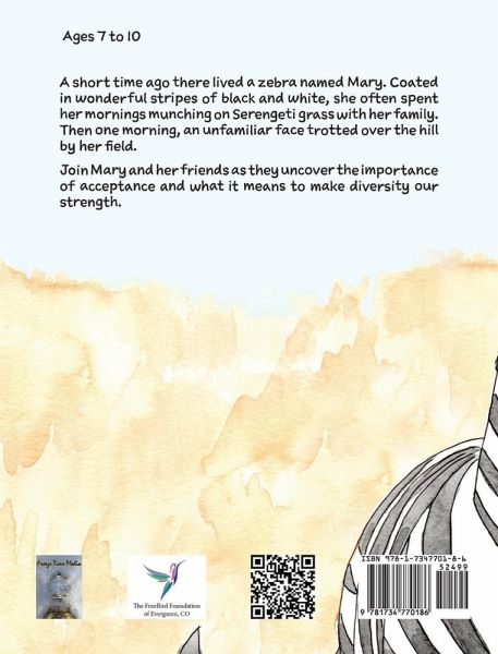 A short time ago there lived a zebra named Mary. Coated in wonderful stripes of black and white, she often spent her mornings munching on Serengeti grass with her family. Then one morning, an unfamiliar face trotted over the hill by her field. Join Mary and her friends as they uncover the importance of acceptance and what it means to make diversity our strength.
