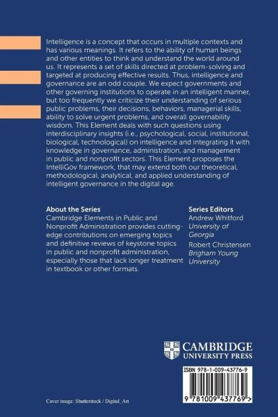 Intelligence is a human's ability to think and understand the environment for problem-solving. This Element deals with using interdisciplinary insights on intelligence and integrating it with knowledge in governance, administration, and management in public and non-profit sectors in the IntelliGov framework.