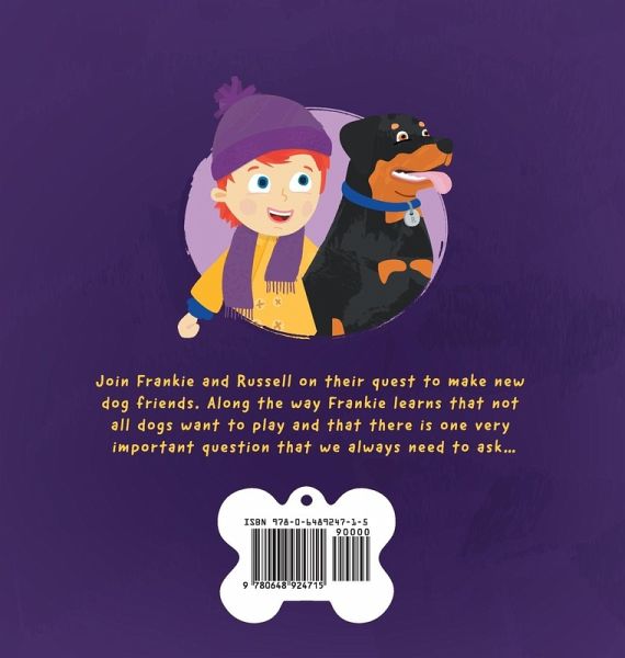 Join Frankie and Russell on their quest to make new dog friends. Along the way Frankie learns that not all dogs want to play and that there is one very important question that we always need to ask... Educating children on the best ways to interact with dogs is vital to ensuring the safety of both child and dog. Can I pat that dog? Takes the reader through a series of interactions and scenarios to help children understand elements of dog behaviour and body language, and the best ways to interact with unfamiliar dogs. Aiming to be both educational and entertaining, this digitally illustrated picture book takes the form of a social story, so it is also helpful for children with autism or developmental delay. A great book for everyone who loves dogs and those who don't... yet.