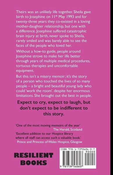 Theirs was an unlikely life together. Sheila gave birth to Josephine on 11th May 1993 and for twenty-three years they co-existed in a loving mother-daughter relationship, but one with a difference. Josephine suffered catastrophic brain injury at birth, never spoke to Sheila, rarely smiled and was barely able to see the faces of the people who loved her. Without a how-to guide, people around Josephine strove to make her life better through years of multiple medical procedures, tortuous therapies and uncomfortable equipment. But this isn't a misery memoir; it's the story of a person who touched the lives of so many people - a bright and beautiful young lady who could 'work the room'. despite her enormous limitations. She brought out the best in people. Expect to cry, expect to laugh, but don't expect to be indifferent to this story.