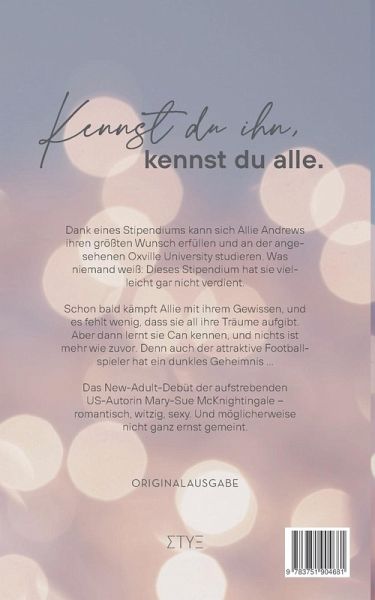 Dank eines Stipendiums kann sich Allie Andrews ihren größten Wunsch erfüllen und an der angesehenen Oxville University studieren. Was niemand weiß: Dieses Stipendium hat sie vielleicht gar nicht verdient. Schon bald kämpft Allie mit ihrem Gewissen, und es fehlt wenig, dass sie all ihre Träume aufgibt. Aber dann lernt sie Can kennen, und nichts ist mehr wie zuvor. Denn auch der attraktive Footballspieler hat ein dunkles Geheimnis ... CAN IT BE LOVE ist das New-Adult-Debüt der aufstrebenden US-Autorin Mary-Sue McKnightingale - romantisch, witzig, sexy. Und möglicherweise nicht ganz ernstgemeint.