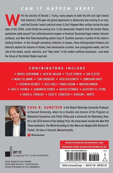 Acclaimed legal scholar, Harvard Professor, and New York Times bestselling author Cass R. Sunstein queried a number of the nation's leading thinkers. In this thought-provoking collection of essays, these distinguished thinkers and theorists explore the lessons of history, how democracies crumble, how propaganda works, and the role of the media, courts, elections, and "fake news" in the modern political landscape-and what the future of the United States may hold.