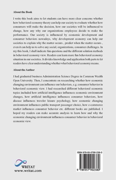 I write this book aims to let students can have more clear concerns whether how behavioral economy theory can help our society to evaluate whether how consumers will make the decision, how our societies will be influenced to change, how any why our organizations employees decide to make the performance. Our society is influenced by economic development and consumer behaviors nowadays, why development economy can help our societies to explain why the matter occurs , predict when the matter occurs , even it can help us to solve any social, organizations, consumer challenges. In my this book, I shall indicate fun questions and the different solution methods in behavioral economy view. Readers can learn more fun behavioral economy situation in our societies. It divides knowledge and application both parts to let readers have clear understanding whether what behavioral economy means.
