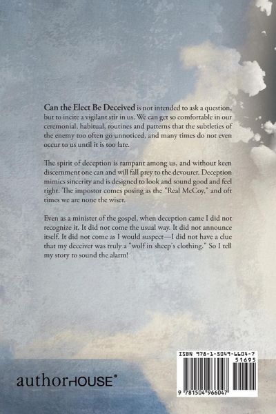 Can the Elect Be Deceived is not intended to ask a question, but to incite a vigilant stir in us. We can get so comfortable in our ceremonial, habitual, routines and patterns that the subtleties of the enemy too often go unnoticed, and many times do not even occur to us until it is too late. The spirit of deception is rampant among us, and without keen discernment one can and will fall prey to the devourer. Deception mimics sincerity and is designed to look and sound good and feel right. The impostor comes posing as the "Real McCoy," and oft times we are none the wiser. Even as a minister of the gospel, when deception came I did not recognize it. It did not come the usual way. It did not announce itself. It did not come as I would suspect-I did not have a clue that my deceiver was truly a "wolf in sheep's clothing." So I tell my story to sound the alarm!