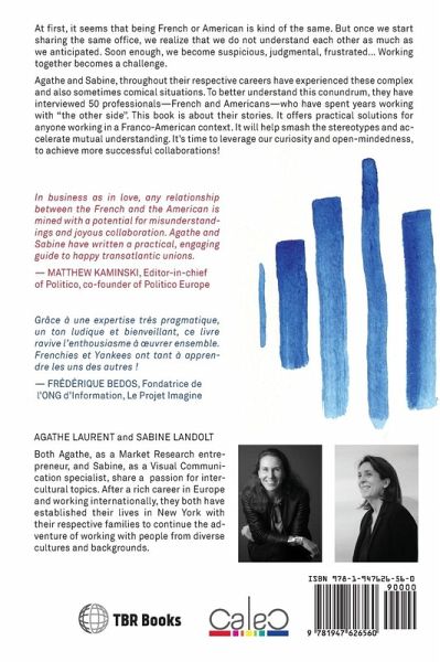 Can We Agree to Disagree? Exploring the differences at work between Americans and the French: A cross-cultural perspective on the gap between the Hexagon and the U.S., and tips for successful and happy collaborations. At first, there's this impression that we're alike, that being French or American is kind of the same. We celebrate the same heroes, sing the same tunes, and prefer the same cool looks. But once we start working together, sharing the same office space, and using the same coffee machine, we notice that our ways of working diverge, and that we do not understand each other as much as we thought we did. Soon enough, we become suspicious, embarrassed, judgmental... Working together becomes challenging. All of a sudden, we realize that the ocean that separates us is real! Sabine Landolt and Agathe Laurent, co-authors of this book, have been through this deep realization themselves. - Sabine, Swiss-American, has had significant experience living in Italy and in France, arrived with her family in New York in 2008. - Agathe, spent her early childhood in the US and later had an international professional career, was onboarded to her new job in New York in 2014. Without a question, both experienced challenging work-related moments, due to cultural misunderstanding and radically different approaches to work. The simplest task became mountainous obstacles to overcome. All basics became such as obstacles. Deeply inspired by their own journey, they decided to create this very unique book: a compelling collection of stories from French and American professionals about their experiences working together. This book reveals the risks of misjudgments, miscommunications and related emotions. It provides tips to accelerate mutual understanding, with a clear and simple ambition: To help let go of stereotypes, spark curiosity, and encourage professionals to combine the best of both cultures, for happier, easier and more successful professional collaborations. What makes this book so different? This book introduces a whole new concept with very unique learnings , with an approach that's a bit provocative as well as evocative! This book shows the severe risk of mutual misjudgment. The authors don't try to reinvent the wheel here nor to dig into the 'why's'. Through doubts, observations, interrogations, experiences, the reader grasps the profundity of the gap, and the deep emotions -i.e. the symptoms- in those moments. This book is about real stories, which we hope will make the readers smile and relate to, whomever they are and wherever they live--in France or in the U.S. It is not about trying to be scientific, nor relying on the Theory-we know there are nuances of all types, based on the regions, the industry, and roles within an organization. And of course, there's a person's unique history. This book speaks about what matters most to people, and where the issues are the most numerous and unexpected. The authors are not trying to be comprehensive-the topics come directly from the 50 interviews-split evenly between Americans and French people, conducted in a semi-directed mode, following the methods of Freud and Piaget, working with associations and spontaneous probes. This book provides tips and tricks on how to get there. Where, you may ask? Again, happier, more effective work collaboration.