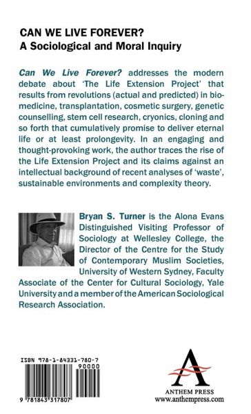 An enlightening look into the medical, cultural, religious and philosophical implications of life extension.