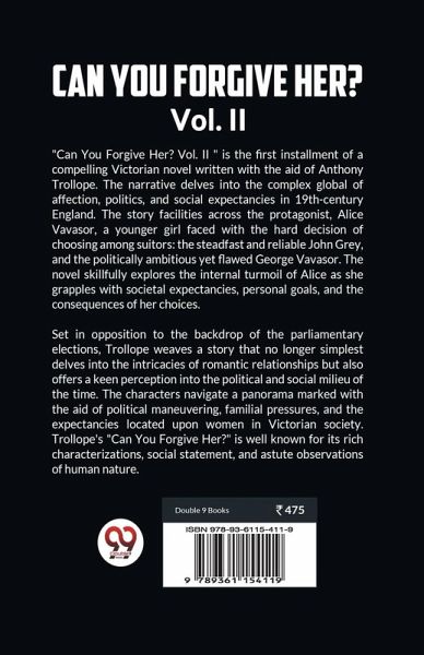"Can You Forgive Her? Vol. II " is the first installment of a compelling Victorian novel written with the aid of Anthony Trollope. The narrative delves into the complex global of affection, politics, and social expectancies in 19th-century England. The story facilities across the protagonist, Alice Vavasor, a younger girl faced with the hard decision of choosing among suitors: the steadfast and reliable John Grey, and the politically ambitious yet flawed George Vavasor. The novel skillfully explores the internal turmoil of Alice as she grapples with societal expectancies, personal goals, and the consequences of her choices. Set in opposition to the backdrop of the parliamentary elections, Trollope weaves a story that no longer simplest delves into the intricacies of romantic relationships but also offers a keen perception into the political and social milieu of the time. The characters navigate a panorama marked with the aid of political maneuvering, familial pressures, and the expectancies located upon women in Victorian society. Trollope's "Can You Forgive Her?" is well known for its rich characterizations, social statement, and astute observations of human nature.