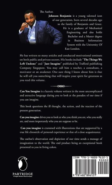 "Can You Imagine" is a laconic volume written in the most uncomplicated and attractive language, daring you to look at the paradox of our time if you can imagine. It questions every ill thought, action and reaction; it drives you to look at who you think you are, who you really are, and more importantly who you are not. As such, every illustration in this book is supported by a true life chronicle of personal experience or that of a close acquaintance. The author's observation and depiction of our time sends a message and imagination to the world. The end product being an exceptional book presented to you in living colors.