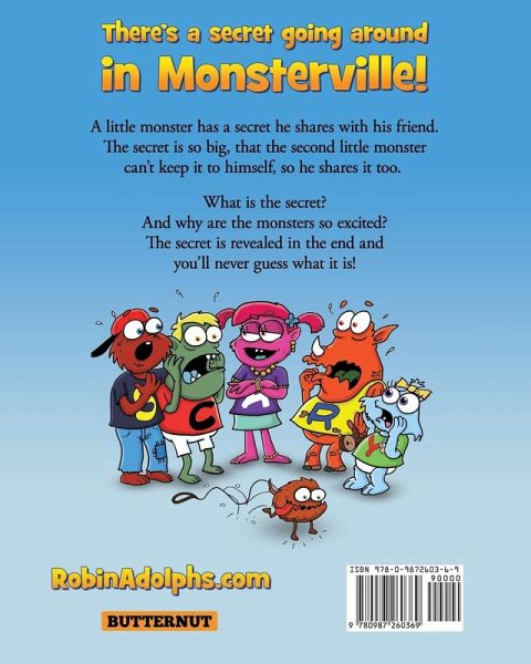 There's a secret going around in Monsterville! A little monster has a secret he shares with his friend. The secret is so big, that the second little monster can't keep it to himself, so he shares it too. What is the secret? And why are the monsters so excited? The secret is revealed in the end and you'll never guess what it is!
