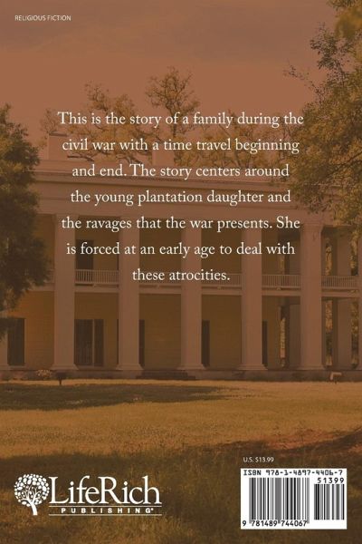 This is the story of a family during the civil war with a time travel beginning and end. The story centers around the young plantation daughter and the ravages that the war presents. She is forced at an early age to deal with these atrocities.