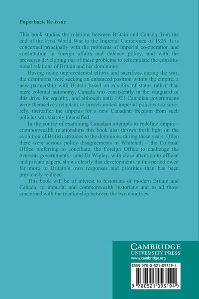 This book studies the relations between Britain and Canada from the end of the First World War to the Imperial Conference of 1926.
