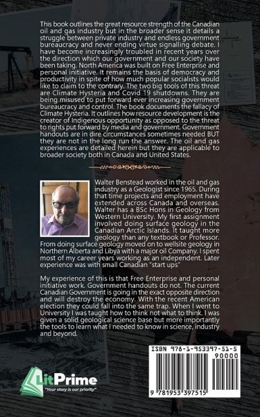 This book outlines the great resource strength of the Canadian oil and gas industry but in the broader sense it details a struggle between private industry and endless government bureaucracy and never-ending virtue-signaling debate. I have become increasingly troubled in recent years over the direction which our government and our society have been taking. North America was built on Free Enterprise and personal initiative. It remains the basis of democracy and productivity in spite of how much popular socialists would like to claim to the contrary. The two big tools of this threat are Climate Hysteria and Covid 19 shutdowns. They are being misused to put forward ever-increasing government bureaucracy and control. The book documents the fallacy of Climate Hysteria. It outlines how resource development is the creator of Indigenous opportunity as opposed to the threat to rights put forward by media and government. Government handouts are in dire circumstances sometimes needed BUT they are not, in the long run, the answer. The oil and gas experiences are detailed herein but they are applicable to broader society both in Canada and the United States.