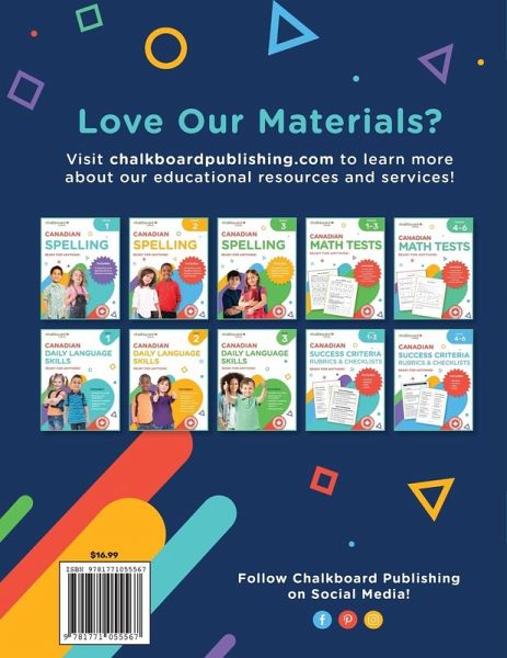 Canadian Daily Math Grade 1: Perfect for morning work, "bell-ringers," homework, center work, or test prep. Spiral review essential math concepts and skills with consistent and focused practice! This resource features 30 weeks of activities where each day of the week (Monday to Friday) focuses on a specific math strand featuring:Number Sense Patterning and Algebra Measurement Geometry and Spatial Sense Data Management and Probability Brain Stretch This versatile resource is the ideal supplement to enhance or enrich any math curriculum. Use these activities as individual bell work, as a whole class or as assigned homework. It also includes a student tracking sheet as well as teaching tips. To easily differentiate instruction, the student pages for the other grades in this series are intentionally organized in the same way and look similar.