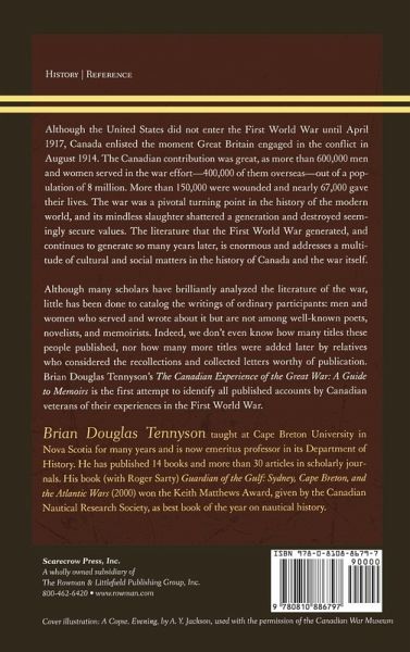 Although the United States itself did not enter the war until April 1917, Canada enlisted the moment Great Britain engaged in the conflict in August of 1914. The Canadian contribution was great, as over 600,000 men and women came to serve in the war effort. Over 150,000 were wounded while near 67,000 gave their lives. The literature it generated, and continues to generate so many years later, is enormous and addresses all of its aspects. The Canadian Experience of the Great War: A Guide to Memoirs is the first attempt to identify all of the published accounts by Canadian veterans of their Great War experiences.