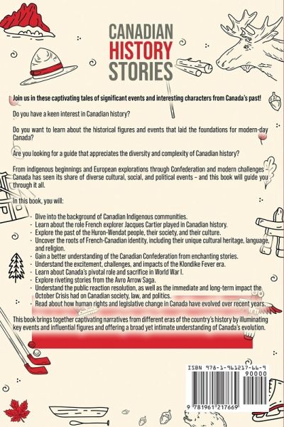 Join us in these captivating tales of significant events and interesting characters from Canada's past! Do you have a keen interest in Canadian history? Do you want to learn about the historical figures and events that laid the foundations for modern-day Canada? Are you looking for a guide that appreciates the diversity and complexity of Canadian history? From indigenous beginnings and European explorations through Confederation and modern challenges - Canada has seen its share of diverse cultural, social, and political events - and this book will guide you through it all. In this book, you will: Dive into the background of Canadian Indigenous communities. Learn about the role French explorer Jacques Cartier played in Canadian history. Explore the past of the Huron-Wendat people, their society, and their culture. Uncover the roots of French-Canadian identity, including their unique cultural heritage, language, and religion. Gain a better understanding of the Canadian Confederation from enchanting stories. Understand the excitement, challenges, and impacts of the Klondike Fever era. Learn about Canada's pivotal role and sacrifice in World War I. Explore riveting stories from the Avro Arrow Saga. Understand the public reaction resolution, as well as the immediate and long-term impact the October Crisis had on Canadian society, law, and politics. Read about how human rights and legislative change in Canada have evolved over recent years. This book brings together captivating narratives from different eras of the country's history by illuminating key events and influential figures and offering a broad yet intimate understanding of Canada's evolution.