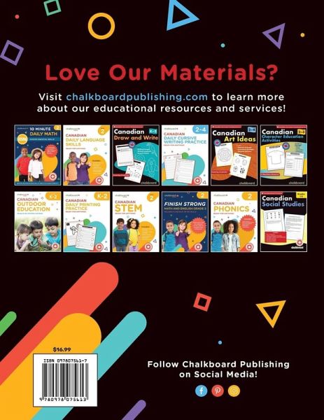 Canadian Math Basics Grade 2: Help students consolidate important math skills! With its coverage of key topics and its engaging and accessible design, this workbook is the perfect tool for developing strong math skills and a love of learning. Designed for independent use, students will gain systematic practice in:Number Sense Measurement Patterning and Algebra Geometry Data Management These activities are designed to challenge students and help them develop critical thinking skills, making this workbook a valuable tool for both teachers and parents. This versatile resource is the ideal supplement to enhance or enrich any math curriculum. These student-friendly reproducible pages are great for use at school or at home.