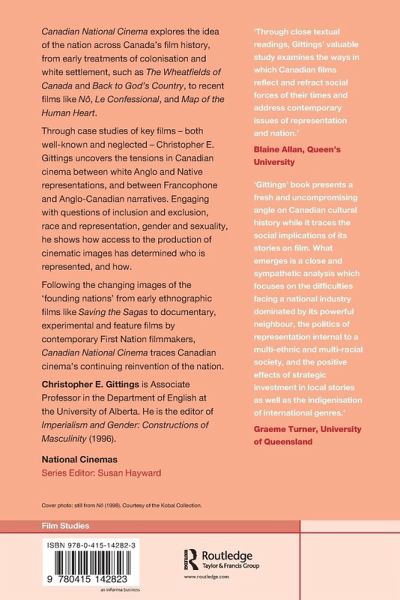 Canadian National Cinema explores the idea of the nation across Canada's film history, from early films of colonisation and white settlement such as The Wheatfields of Canada and Back to God's Country, to recent films like Nô, LE Confessional Mon Oncle Antoine, Grey Fox, Highway 61, Kanehsatake, and I've Heard the Mermaids Singing.
