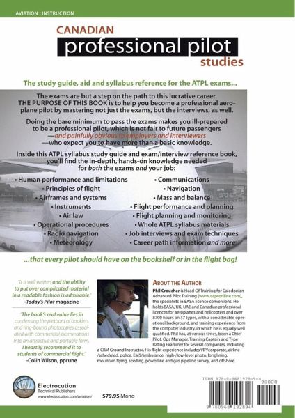 Just as important as the exams is the interview panel, and this is the book for those who want to deal with both - its purpose is to help you become a professional, for which the exams are but a step on the way - doing the bare minimum to pass them makes you ill-prepared to be a pilot, which is not fair to future passengers and painfully obvious to employers (and examiners) who certainly expect you to have more than the basic knowledge supplied by lesser material. It covers the Commercial, ATP, INRAT and IATRA exams, written by a pilot with considerable operational experience, and includes professional tips and tricks not taught in the classroom, plus a lot you should be taught, were it not for time constraints, based on common questions asked during recurrent training, and known exam questions.