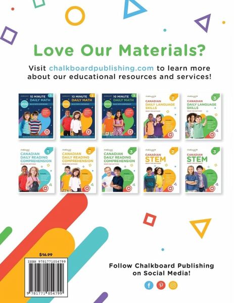 Canadian Spelling Grade 3: This comprehensive workbook is designed to help young students master the art of spelling! Children practice key spelling patterns each week including: Includes:Weekly spelling lists based on spelling patterns Weekly spelling list includes a page to practise reading, writing and spelling out each word Exercises to practice using spelling words Additional word study exercises Spelling tips Ideas to help study words This spelling third grade workbook is the ideal supplement to enhance or enrich any language arts curriculum. Use these activities for individual students, as a whole class or as assigned homework. It also includes weekly lists, practice and word study pages!