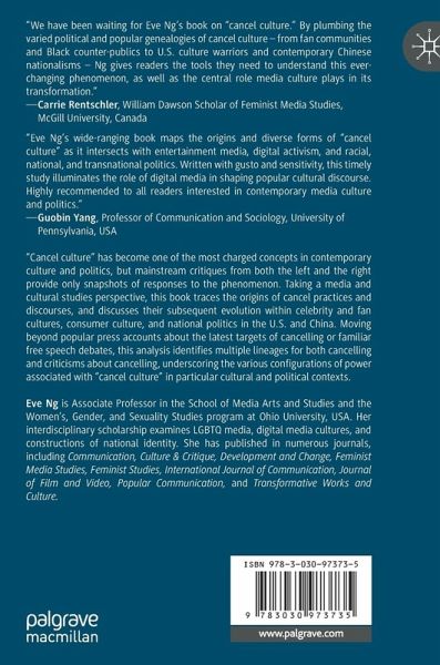 "Cancel culture" has become one of the most charged concepts in contemporary culture and politics, but mainstream critiques from both the left and the right provide only snapshots of responses to the phenomenon. Takinga media and cultural studies perspective, this book traces the origins of cancel practices and discourses, and discusses their subsequent evolution within celebrity and fan cultures, consumer culture, and national politics in the U.S. and China. Moving beyond popular press accounts about the latest targets of cancelling or familiar free speech debates, this analysis identifies multiple lineages for both cancelling and criticisms about cancelling, underscoring the various configurations of power associated with "cancel culture" in particular cultural and political contexts.
