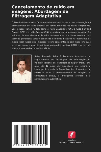 O livro inclui o conceito fundamental e estudos de caso para a remoção ou cancelamento de ruído através de vários métodos de filtros adaptativos. São focados vários ruídos, como o ruído Gaussiano (GN), o ruído Salt and Pepper (SPN) e o ruído Speckle (SN), associados a vários níveis de ruído. Os métodos de cancelamento de ruído apresentados nos livros contêm duas secções principais: Versão deslocada e método baseado na estimativa da média local. Estes dois métodos foram apresentados com base em duas técnicas, como o erro de mínimos quadrados médios (LMS) e o erro de mínimos quadrados recursivos (RLS).