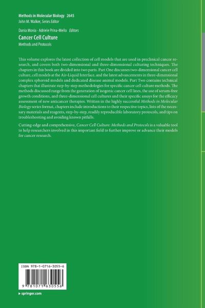 Cutting-edge and comprehensive, Cancer Cell Culture: Methods and Protocols is a valuable tool to help researchers involved in this important field to further improve or advance their models for cancer research.