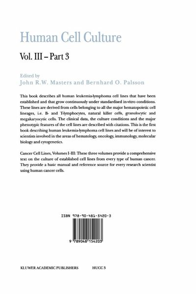 This book describes all human leukemia-lymphoma cell lines that have been established and that grow continuously under standardised in vitro conditions. These lines are derived from cells belonging to all the major hematopoietic cell lineages, i.e. B- and T-lymphocytes, natural killer cells, granulocytic cells and megakaryocytic cells. The clinical data, the culture conditions and the major phenotypic features of the cell lines are described with citations. This book is the first book describing human leukemia-lymphoma cell lines and will be of interest to scientists involved in the areas of hematology, oncology, immunology, molecular biology and cytogenetics.