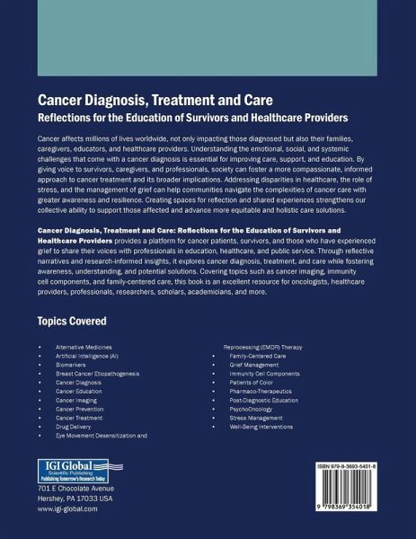 Cancer affects millions of lives worldwide, not only impacting those diagnosed but also their families, caregivers, educators, and healthcare providers. Understanding the emotional, social, and systemic challenges that come with a cancer diagnosis is essential for improving care, support, and education. By giving voice to survivors, caregivers, and professionals, society can foster a more compassionate, informed approach to cancer treatment and its broader implications. Addressing disparities in healthcare, the role of stress, and the management of grief can help communities navigate the complexities of cancer care with greater awareness and resilience. Creating spaces for reflection and shared experiences strengthens our collective ability to support those affected and advance more equitable and holistic care solutions. Cancer Diagnosis, Treatment and Care: Reflections for the Education of Survivors and Healthcare Providers provides a platform for cancer patients, survivors, and those who have experienced grief to share their voices with professionals in education, healthcare, and public service. Through reflective narratives and research-informed insights, it explores cancer diagnosis, treatment, and care while fostering awareness, understanding, and potential solutions. Covering topics such as cancer imaging, immunity cell components, and family-centered care, this book is an excellent resource for oncologists, healthcare providers, professionals, researchers, scholars, academicians, and more.