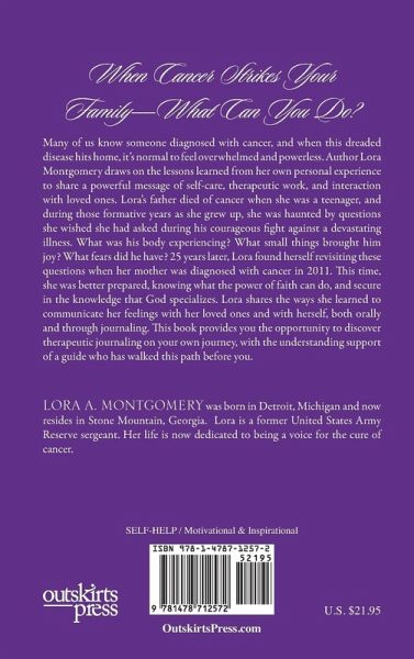 Cancer in My Life is a personal writing journal for cancer patients as well as their caregivers. In this inspirational book, Lora Montgomery, encourages anyone who has been touched by cancer directly or indirectly to gain inner strength through writing.
