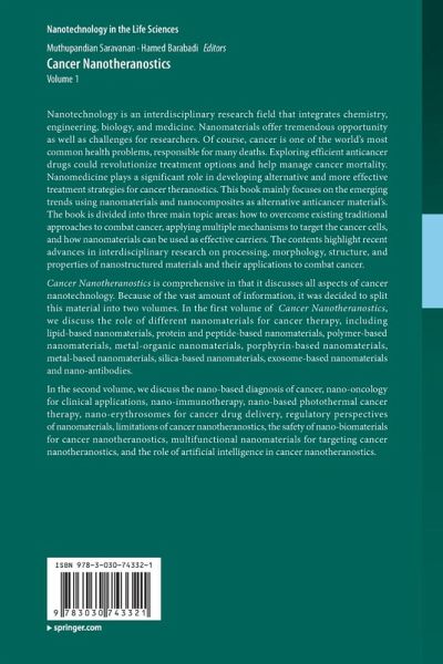 Nanotechnology is an interdisciplinary research field that integrates chemistry, engineering, biology, and medicine. Nanomaterials offer tremendous opportunity as well as challenges for researchers. Of course, cancer is one of the world's most common health problems, responsible for many deaths. Exploring efficient anticancer drugs could revolutionize treatment options and help manage cancer mortality. Nanomedicine plays a significant role in developing alternative and more effective treatment strategies for cancer theranostics. This book mainly focuses on the emerging trends using nanomaterials and nanocomposites as alternative anticancer material's. The book is divided into three main topic areas: how to overcome existing traditional approaches to combat cancer, applying multiple mechanisms to target the cancer cells, and how nanomaterials can be used as effective carriers. The contents highlight recent advances in interdisciplinary research on processing, morphology, structure, andproperties of nanostructured materials and their applications to combat cancer.Cancer Nanotheranostics is comprehensive in that it discusses all aspects of cancer nanotechnology. Because of the vast amount of information, it was decided to split this material into two volumes. In the first volume of Cancer Nanotheranostics, we discuss the role of different nanomaterials for cancer therapy, including lipid-based nanomaterials, protein and peptide-based nanomaterials, polymer-based nanomaterials, metal-organic nanomaterials, porphyrin-based nanomaterials, metal-based nanomaterials, silica-based nanomaterials, exosome-based nanomaterials and nano-antibodies. In the second volume, we discuss the nano-based diagnosis of cancer, nano-oncology for clinical applications, nano-immunotherapy, nano-based photothermal cancer therapy, nano-erythrosomes for cancer drug delivery, regulatory perspectives of nanomaterials, limitations of cancer nanotheranostics, the safety of nano-biomaterials for cancer nanotheranostics, multifunctional nanomaterials for targeting cancer nanotheranostics, and the role of artificial intelligence in cancer nanotheranostics.