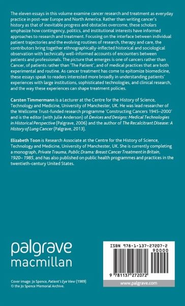 Table of Contents Table of Figures Acknowledgements Notes on Contributors Introduction; C.Timmermann & E.Toon Three Stories: Generations of Breast Cancer; J.Baines Running Out of Options: Surgery, Hope and Progress in the Management of Lung Cancer, 1950s to 1990s; C.Timmermann A Case Study in Human Experimentation: The Patient as Subject, Object and Victim; G.J.Kutcher Captain Chemo and Mr Wiggly: Patient Information for Children with Cancer in the Late Twentieth Century; E.B.Johnstone Knife, Rays and Women: Controversies about the Uses of Surgery versus Radiotherapy in the Treatment of Female Cancers in France and in the US, 1920-1960; I.Löwy Measured Responses: British Clinical Researchers and Therapies for Advanced Breast Cancer in the 1960s and 1970s; E.Toon Cancer Research and Protocol Patients: From Clinical Material to Committee Advisors; P.Keating & A.Cambrosio Uncertain Enthusiasm: PSA Screening, Proton Therapy, and Prostate Cancer; H.Valier Patients and their Problems: Situated Alliances of Patient-Centred Care and Pathway Development; T.Zuiderent-Jerak , R.Bal & M.Berg Radicalism, Neoliberalism and Biographical Medicine: Constructions of English Patients and Patient Histories around 1980 and Now; J.V.Pickstone Index