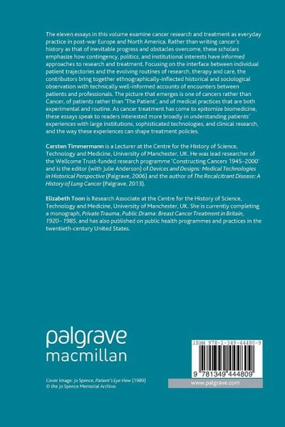 Eleven essays by historians and sociologists examine cancer research and treatment as everyday practice in post-war Europe and North America. These are not stories of inevitable medical progress and obstacles overcome, but of historical contingencies, cultural differences, hope, and often disappointed expectations.
