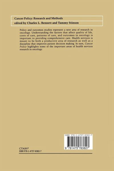 Policy and outcome studies represent a new area of research in oncology. Understanding the factors that affect quality of life, costs of care, patterns of care, and outcomes in oncology is important to providing comprehensive care. Health services is meant to be both a productive area of research as well as a discipline that improves patient decision making. In sum, Cancer Policy highlights some of the important areas of health services research in oncology.