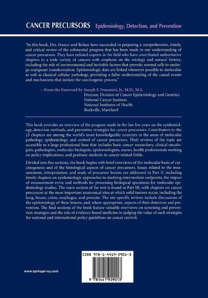 "Drs. Franco and Rohan bring together a timely and comprehensive set of reviews describing the biologic basis of carcinogenesis, issues related to measurement and interpretation of cancer precursors, site specific precancerous conditions, and control of cancer precursors ...The book has several important strengths, most notably the wealth of current information on cancer precursors and related topics provided by an impressive cast of cancer researchers. ... it effectively provides specific and compelling reasons for studying cancer precursors, the most up-to-date and comprehensive collection of reviews on the topic, and a realistic picture of the complexities facing research of cancer precursors." -American Journal of Epidemiology