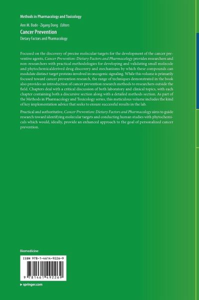 "The purpose is to provide an overview of the most advanced scientific methods or protocols that are the keys to obtaining knowledge that can be applied in cancer prevention ... . This should be interesting to basic and clinical researchers in cancer prevention and drug development. ... also could be interesting to researchers in the field of cancer treatment and oncogenic signaling. ... It is a good information source for scientific researchers and others who are interested in cancer prevention." (Qi Chen, Doody's Book Reviews, May, 2014)