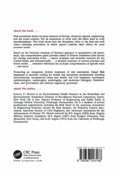 Based on the National Academy of Sciences approach to quantitative risk assessment. Emphasizes how an accurate assessment of cancer risk must draw on a wide range of disciplines, such as biology, chemistry, physics, engineering, and the social sciences. Provides tables of Poisson confidence limit fa