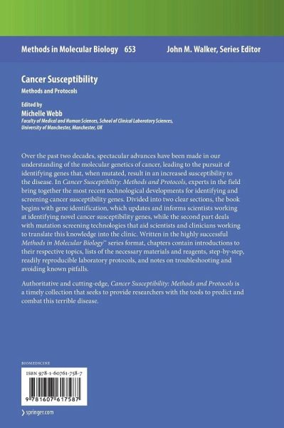 "Michelle Webb is attempting to give the readers the tools to achieve just that in the oncology field. The book provides up to date protocols and guides aimed at identification of mutations in the known cancer susceptibility genes as well as guides on how to search new ones. ... this book provides valuable and relevant information about susceptibility genes analysis and I'm sure it won't spend too much time just lying on the shelf in any research or clinical lab in this field." (J. Markus, Neoplasma, February, 2011)