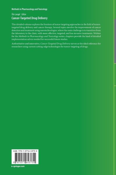 This detailed volume explores the frontiers of tumor targeting approaches in the field of tumor-targeted drug delivery and cancer therapy. Several topics involve the improvement of cancer detection and treatment using nanotechnologies, where the main challenge to transition from the laboratory to the clinic, with more effective, targeted, and less invasive treatments. Written for the Methods in Pharmacology and Toxicology series, chapters provide the kind of detailed implementation advice needed for successful future studies. Authoritative and innovative, Cancer-Targeted Drug Delivery…mehr