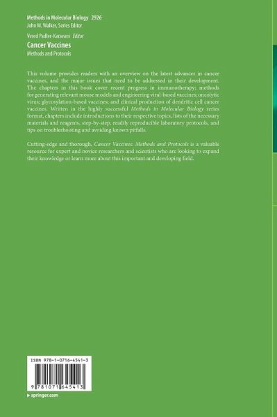 Cutting-edge and thorough, Cancer Vaccines: Methods and Protocols is a valuable resource for expert and novice researchers and scientists who are looking to expand their knowledge or learn more about this important and developing field.