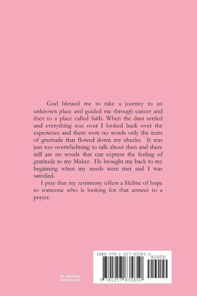 My Doctor, the Nurses, Lab Techs and so on were helping to fight my cancer. Then one day the realization came to me that I didn't have to sit quietly while others fought for me. There were weapons that were available to me. Prayer was a very powerful weapon and I began to pray more. Finding the joy in life is another weapon and I began to smile more. I spoke to the cancer, my enemy and I told it to leave. I started to feel good inside. I started to feel a change. It wasn't so much that I was going to live or die it was the fact that I believed I was going to live,....... and if I didn't I wasn't going to give this uninvited guest, another moment of sadness or fear. Faith stepped in and hopelessness walked out. This is my testimony about the importance of Faith in our lives.
