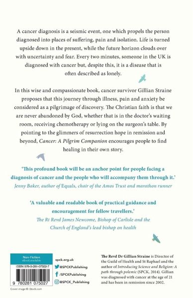 A cancer diagnosis is a seismic event. It divides life into before and after, and propels the diagnosed into places of suffering, pain and isolation; life is turned upside down in the present while the future horizon clouds with uncertainty and fear. Despite someone getting diagnosed with cancer in the UK every two minutes, cancer is a disease that is often described as lonely as the sufferer sets out on a tough journey through waiting, treatment and recovery. In this wise and compassionate book, cancer survivor Gillian Straine proposes that this journey through illness, pain and anxiety be reconceptualised as a pilgrimage of discovery. The Christian faith is that we are never abandoned by God, and this promise holds wherever we might find ourselves, whether that is in the doctor's waiting room, in a chair receiving chemotherapy or lying on the surgeons table. Following the journey of Jesus through the darkness of Gethsemane, to the cross and into the silent waiting of Holy Saturday, this book invites the reader to seek God in their experience of cancer and, by pointing to the glimmers of resurrection hope in remission and beyond, to find healing in their own story of illness.