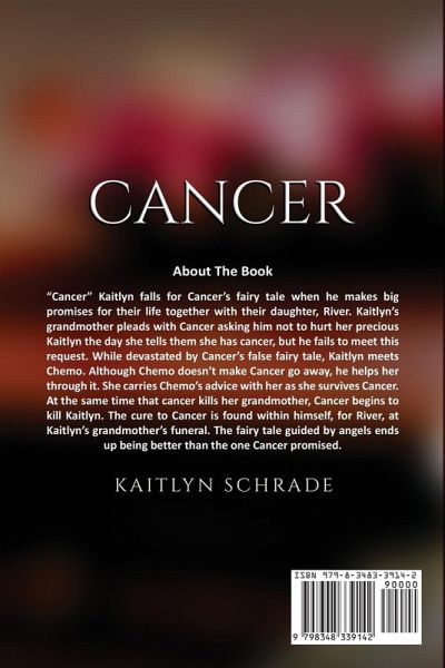 "Cancer" Kaitlyn falls for Cancer's fairy tale when he makes big promises for their life together with their daughter, River. Kaitlyn's grandmother pleads with Cancer asking him not to hurt her precious Kaitlyn the day she tells them she has cancer, but he fails to meet this request. While devastated by Cancer's false fairy tale, Kaitlyn meets Chemo. Although Chemo doesn't make Cancer go away, he helps her through it. She carries Chemo's advice with her as she survives Cancer. At the same time that cancer kills her grandmother, Cancer begins to kill Kaitlyn. The cure to Cancer is found within himself, for River, at Kaitlyn's grandmother's funeral. The fairy tale guided by angels ends up being better than the one Cancer promised.