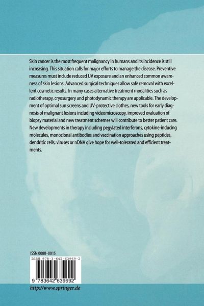 Skin cancer is the most frequent malignancy in humans and its incidence is still increasing. This situation calls for major efforts to manage the disease. Preventive measures must include reduced UV exposure and an enhanced common awareness of skin lesions. Advanced surgical techniques allow safe removal with excellent cosmetic results. In many cases alternative treatment modalities such as radiotherapy, cryosurgery and photodynamic therapy are applicable. The development of optimal sun screens and UV-protective clothes, new tools for early diagnosis of malignant lesions including…mehr