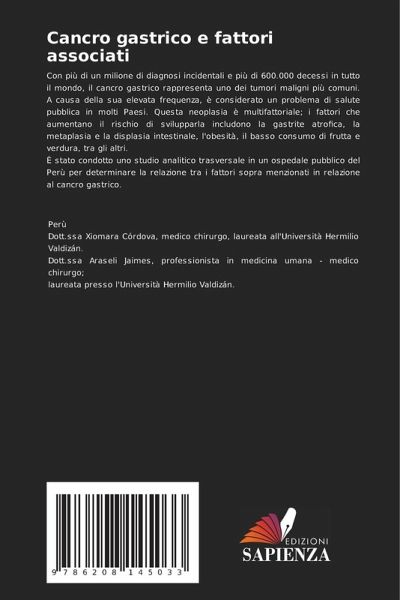 Con più di un milione di diagnosi incidentali e più di 600.000 decessi in tutto il mondo, il cancro gastrico rappresenta uno dei tumori maligni più comuni. A causa della sua elevata frequenza, è considerato un problema di salute pubblica in molti Paesi. Questa neoplasia è multifattoriale; i fattori che aumentano il rischio di svilupparla includono la gastrite atrofica, la metaplasia e la displasia intestinale, l'obesità, il basso consumo di frutta e verdura, tra gli altri. È stato condotto uno studio analitico trasversale in un ospedale pubblico del Perù per determinare la relazione tra i fattori sopra menzionati in relazione al cancro gastrico.