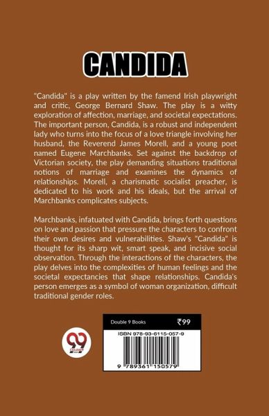 "Candida" is a play written by the famend Irish playwright and critic, George Bernard Shaw. The play is a witty exploration of affection, marriage, and societal expectations. The important person, Candida, is a robust and independent lady who turns into the focus of a love triangle involving her husband, the Reverend James Morell, and a young poet named Eugene Marchbanks. Set against the backdrop of Victorian society, the play demanding situations traditional notions of marriage and examines the dynamics of relationships. Morell, a charismatic socialist preacher, is dedicated to his work and his ideals, but the arrival of Marchbanks complicates subjects. Marchbanks, infatuated with Candida, brings forth questions on love and passion that pressure the characters to confront their own desires and vulnerabilities. Shaw's "Candida" is thought for its sharp wit, smart speak, and incisive social observation. Through the interactions of the characters, the play delves into the complexities of human feelings and the societal expectancies that shape relationships. Candida's person emerges as a symbol of woman organization, difficult traditional gender roles.