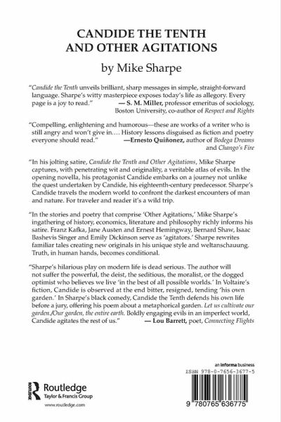 In the stories and poetry that comprise 'Other Agitations, ' Mike Sharpe's ingathering of history, economics, literature, and philosophy richly informs his satire. Franz Kafka, Jane Austen and Ernest Hemingway, Bernard Shaw, Isaac Bashevis Singer and Emily Dickinson serve as 'agitators.' Sharpe rewrites familiar tales creating new originals in his unique style and weltanschauung. Truth, in human hands, becomes conditional
