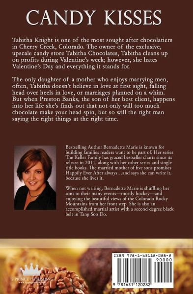Tabitha Knight is one of the most sought after chocolatiers in Cherry Creek, Colorado. The owner of the exclusive, upscale candy store Tabitha Chocolates, Tabitha cleans up on profits during Valentine's week; however, she hates Valentine's Day and everything it stands for. The only daughter of a mother who enjoys marrying men, often, Tabitha doesn't believe in love at first sight, falling head over heels in love, or marriages planned on a whim. But when Preston Banks, the son of her best client, happens into her life she's finds out that not only will too much chocolate make your head spin, but so will the right man saying the right things at the right time.