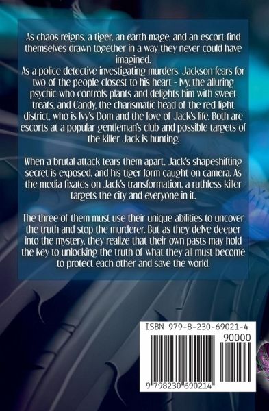 As chaos reigns, a tiger, an earth mage, and an escort find themselves drawn together in a way they never could have imagined. As a police detective investigating murders, Jackson fears for two of the people closest to his heart - Ivy, the alluring psychic who controls plants and delights him with sweet treats, and Candy, the charismatic head of the red-light district, who is Ivy's Dom and the love of Jack's life. Both are escorts at a popular gentleman's club and possible targets of the killer Jack is hunting. When a brutal attack tears them apart, Jack's shapeshifting secret is exposed, and his tiger form caught on camera. As the media fixates on Jack's transformation, a ruthless killer targets the city and everyone in it. The three of them must use their unique abilities to uncover the truth and stop the murderer. But as they delve deeper into the mystery, they realize that their own pasts may hold the key to unlocking the truth of what they all must become to protect each other and save the world. Note: This is a gay paranormal romance trio with a shapeshifting tiger, an earth mage, and a dragon about to find his hoard.