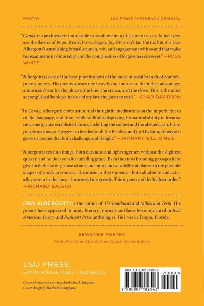 Dan Albergotti's Candy is a book steeped in sound and silence. Sound in the form of song, of chaotic cacophony, and of the drone (sometimes natural, sometimes manufactured) that creates the ambient soundtrack of history and the seemingly apocalyptic present. Silence in the sense both of the void's innate quietude and of the failure to speak--of people either dumbstruck or in denial, not speaking because they cannot or will not. Throughout this collection, these sounds and intermittent silences provide the rhythm for poems that question the nature of truth and myth, and that restlessly search for meaning in a reticent universe, ultimately unwilling to take no for an answer as they strive to find an ever-elusive yes.