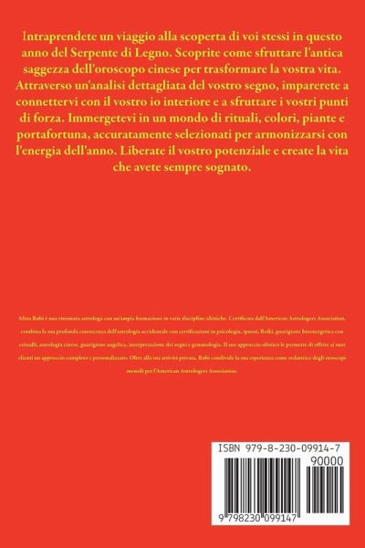 Intraprendete un viaggio alla scoperta di voi stessi in questo anno del Serpente di Legno. Scoprite come sfruttare l'antica saggezza dell'oroscopo cinese per trasformare la vostra vita. Attraverso un'analisi dettagliata del vostro segno, imparerete a connettervi con il vostro io interiore e a sfruttare i vostri punti di forza. Immergetevi in un mondo di rituali, colori, piante e portafortuna, accuratamente selezionati per armonizzarsi con l'energia dell'anno. Liberate il vostro potenziale e create la vita che avete sempre sognato.